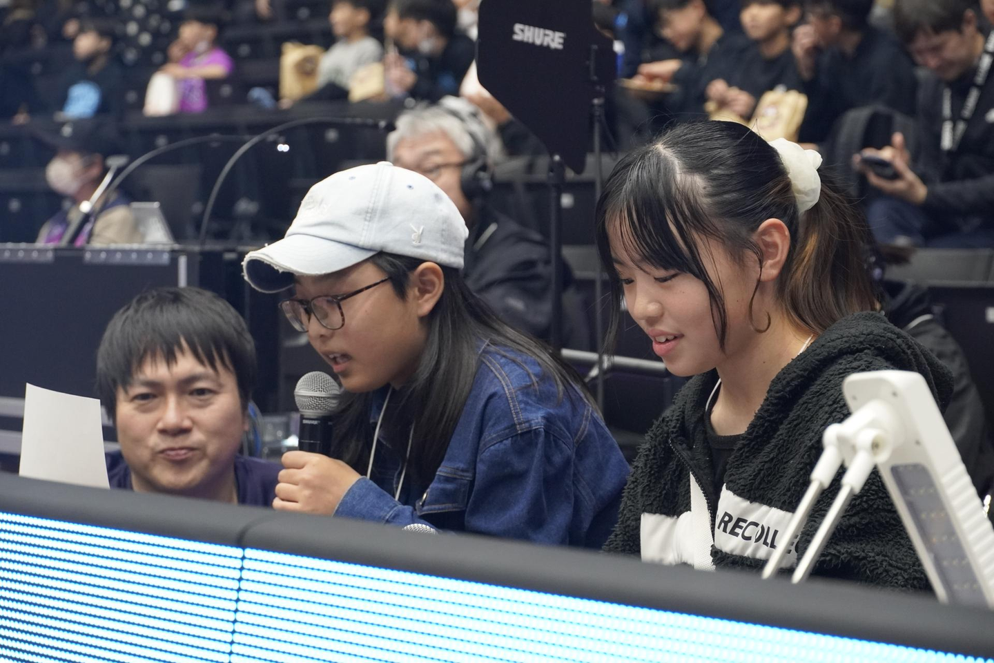 さらに、選手が試合前の練習に励む中、コートサイドではMCを体験 。アリーナ全体を盛り上げる大切な役割を担うMCを、二人の女の子が体験してくれました。