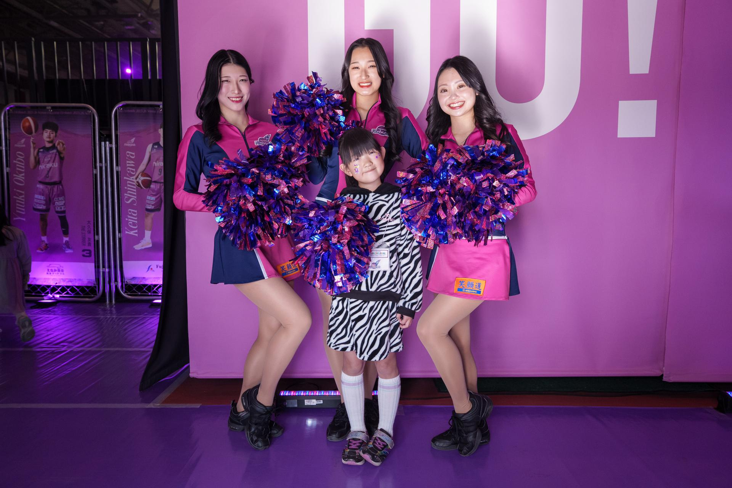 エスコートを終えた後は、選手やチームマスコットと共にコート中央で記念撮影。思い出の一枚となりました。