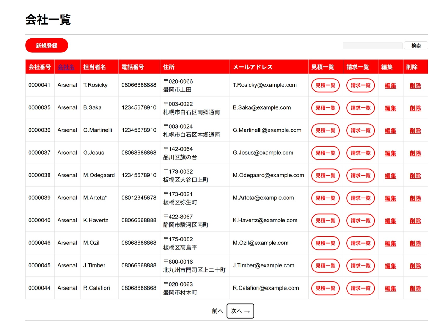 研修のハイライトとして、会社情報・見積・請求を管理するシステムに取り組みました。特に印象に残っているのは、CSSによるレイアウト調整の難しさです。デザインの再現では、marginやpadding、flexboxの調整などを何度も試行錯誤しました。テーブルが崩れたり要素がずれたりするたびに検証ツールで確認し、原因を突き止めて修正する作業を通じて、フロントエンドの基礎力が大きく向上したと感じています。