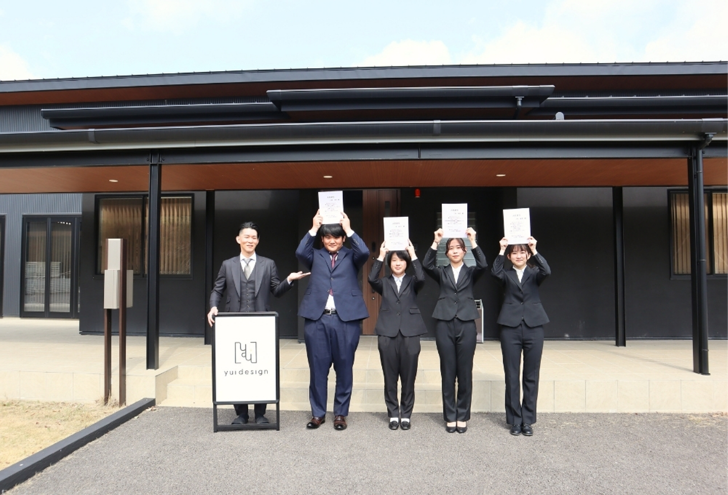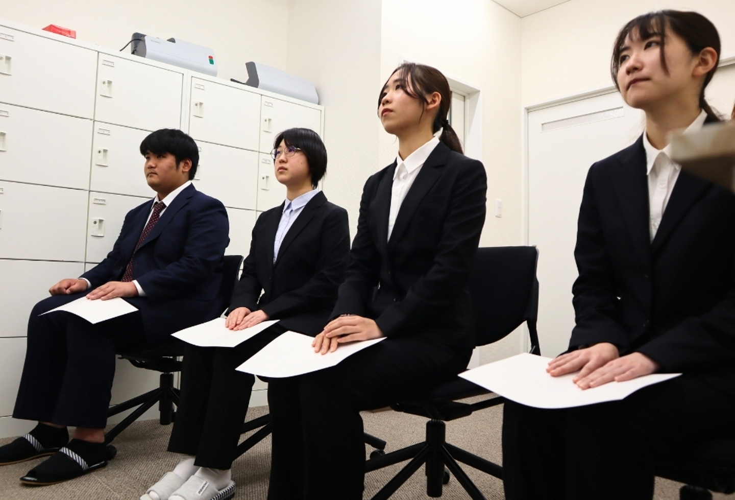 スーツに身を包み、少し緊張した面持ちで式に臨む4名。