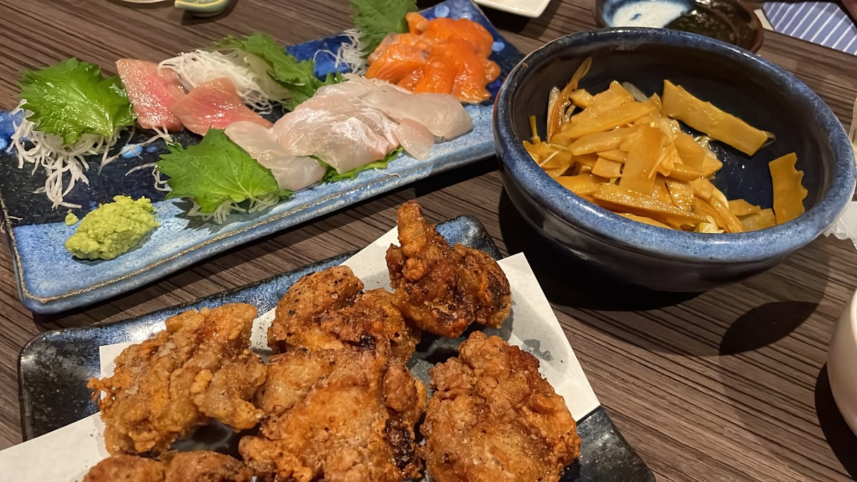 新鮮な刺盛りに、旬のたけのこ、ジューシーな唐揚げ♪