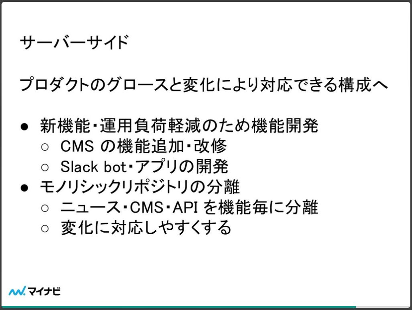 岡部が挙げた「今後やっていくこと」の一部には、「CMS(コンテンツマネジメントシステム)の改修」といった、我々のような非エンジニアがメインで使うシステムの改修も要項として入っていました。
