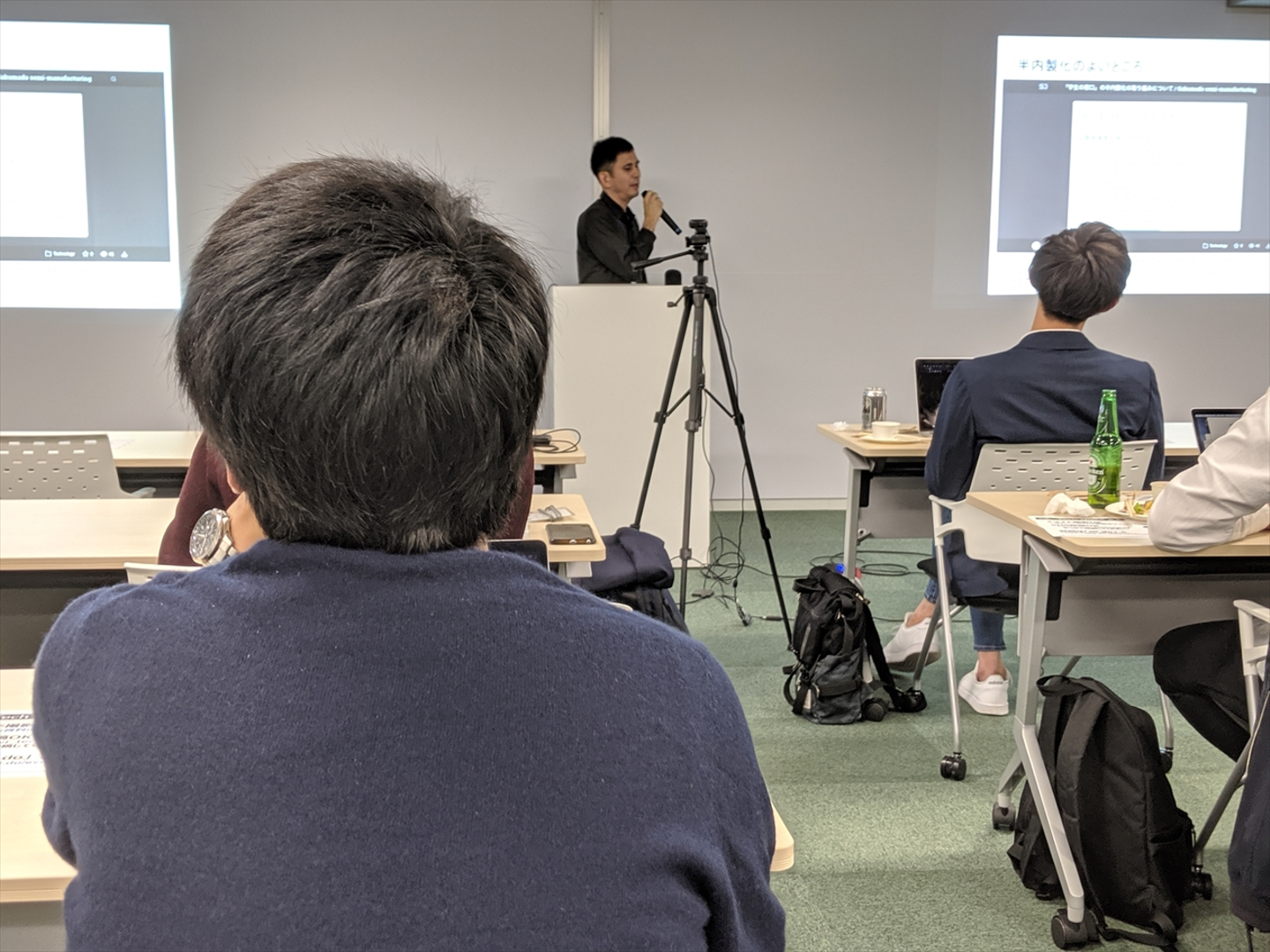 参加者の皆さんは、お酒やソフトドリンクを飲みつつ、弊社エンジニアの話を聞いていました