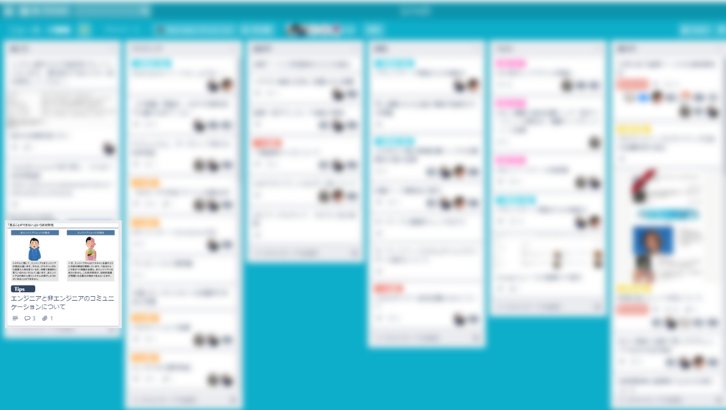 私の所属している「ニュースメディア事業部」のトレロ。ファーストビューのいい位置に置いてあるカードが……
