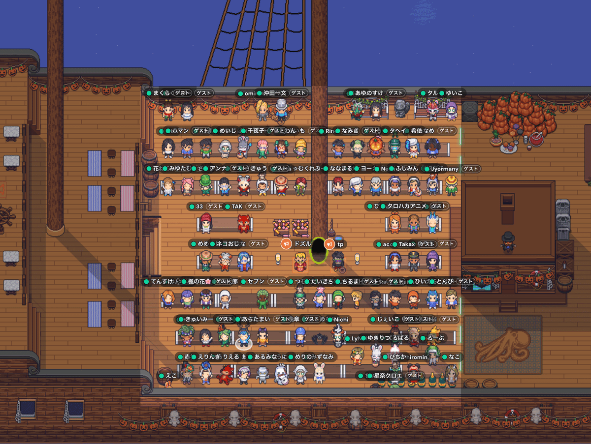 バーチャルオフィスツールのGather上で、YouTube事業部のクルー全員集合の図