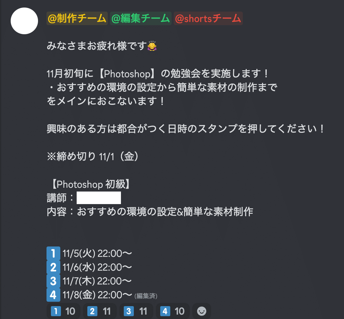 社内で、定期的に勉強会を開催しています。最近だと、マイクラのキャラクターを動かす特殊な編集ソフトの使い方や、サムネイルなどクリエイティブの作り方などをテーマに実施しました。