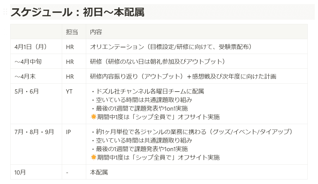 YouTubeシップに本配属される前に、社会人としてのマナーなどを学ぶ新人研修と、もう一つの事業を担うIPシップでの研修期間がありました。