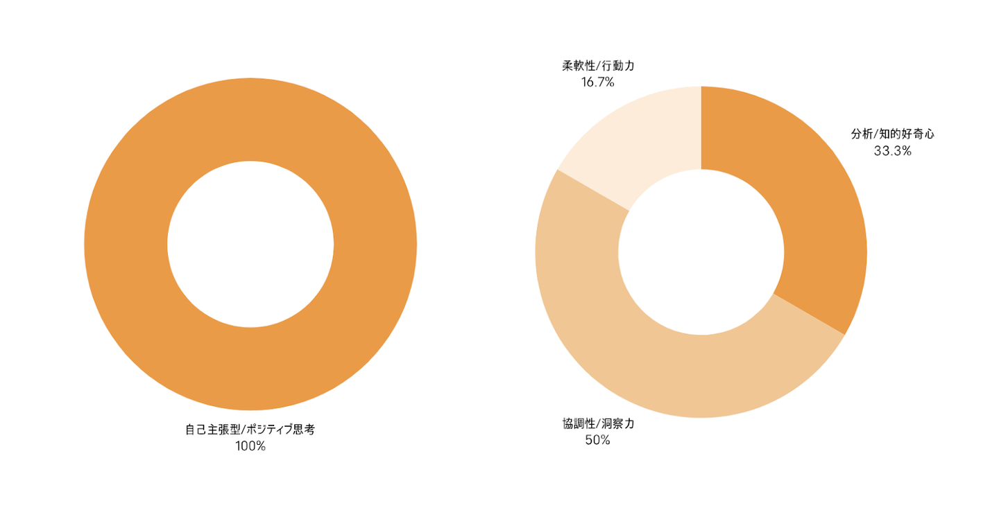 ストレス耐性に強く、ポジティブ思考のメンバーが100%。そして、「分析・洞察力を活かしてチームで数字にコミットできる」バランスのとれた部署であることがわかりました。