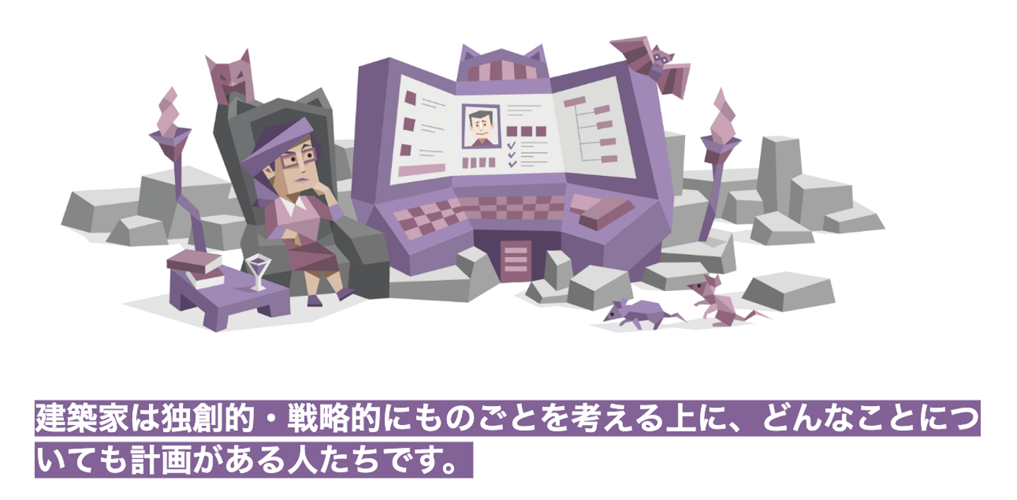 多くの性格タイプは他人の専門知識や社会通念を自分の人生の道しるべとし、現状を受け入れる傾向がありますが、常に懐疑的な建築家は自分で色々なことを理解・発見することを好みます。物事を改善させるためには、規則を破ったり人から非難されたりすることもいとわない傾向があります。それどころか、そういうことが楽しいと感じるのです。