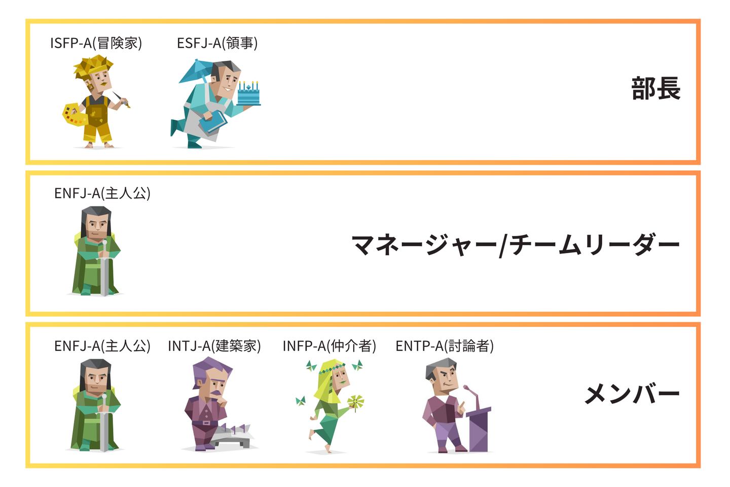 ENFJ-A(主人公):マネージャー、メンバー