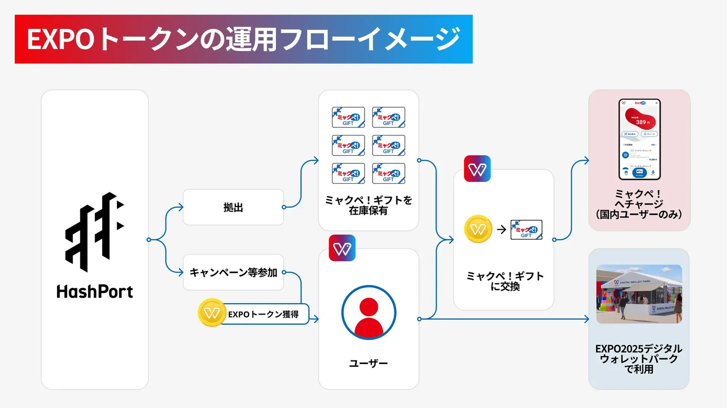 2025年4月16日よりリリースされた「EXPOトークン」は、大阪・関西万博で実際に決済手段として利用できる、ブロックチェーン上で発行されたポイントトークンです。