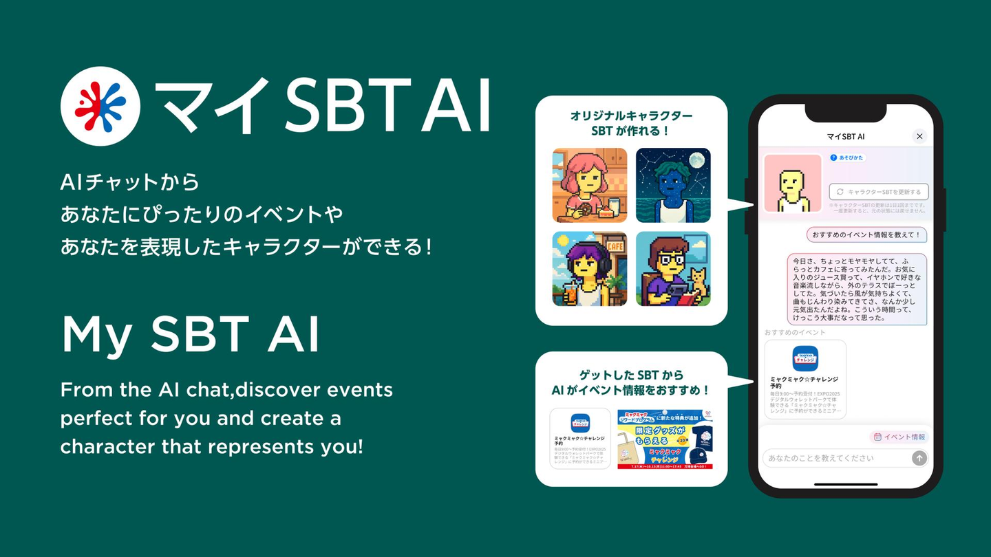 本機能は、大阪・関西万博の大阪ヘルスケアパビリオン内「リボーンチャレンジ」におけるMUIC Kansaiが主催の展示期間である2025年7月22日〜28日にかけて提供され、来場者はEXPOウォレット内のAIチャットと対話することでSBTが生成され、おすすめのイベント情報を表示します。