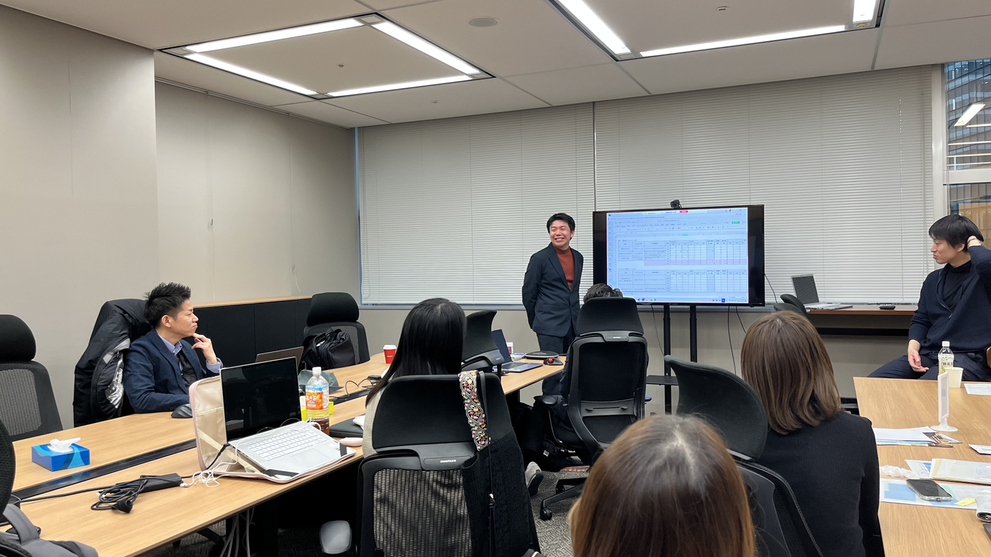 移転後早速、遠方のメンバーも西新宿に集まり、全体会議を開催しました。実はこれまでは全員が集まるとオフィス内には全員座れず、出勤調整をしていたのです・・・しかも会議室もビル内の共用だったので、結構不便でした。