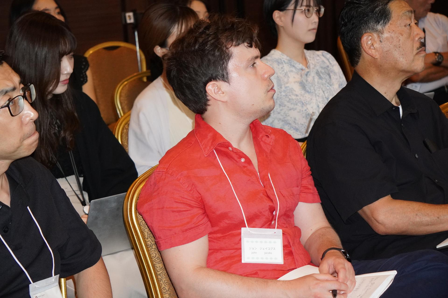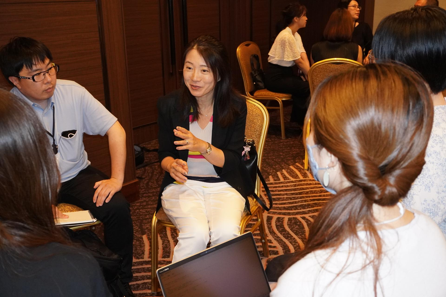 メモを取りつつ真剣に話を聞く社員たち