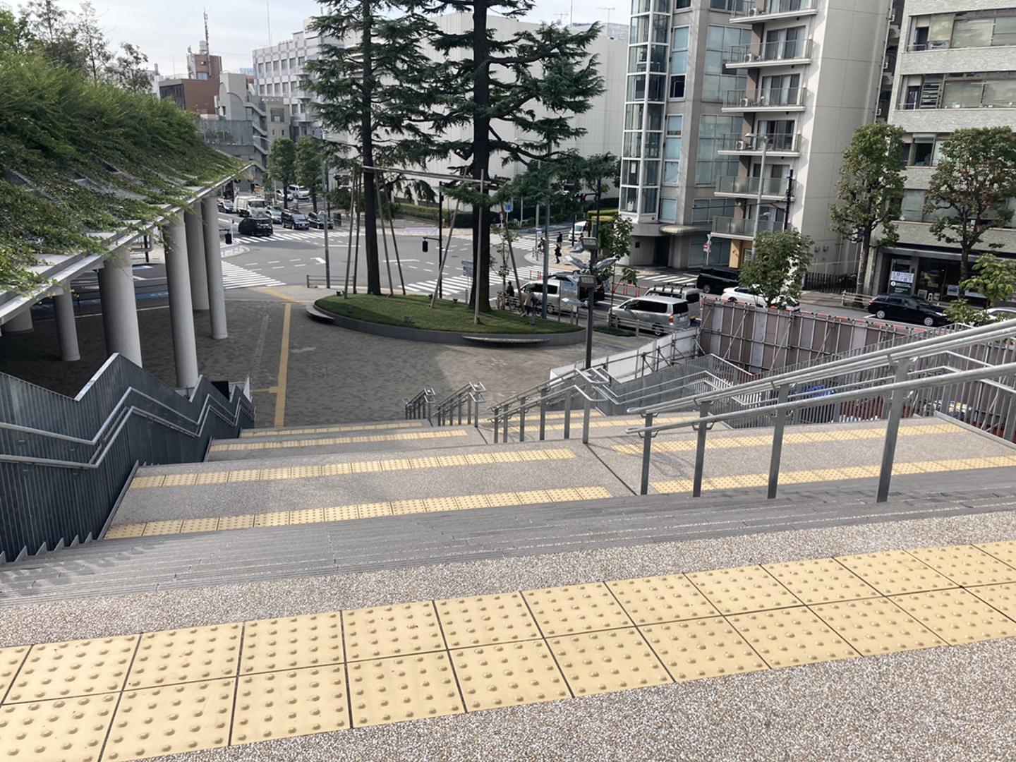 階段を降りていくと交差点が見えてきます。この交差点を渡るともうすぐオフィスです。