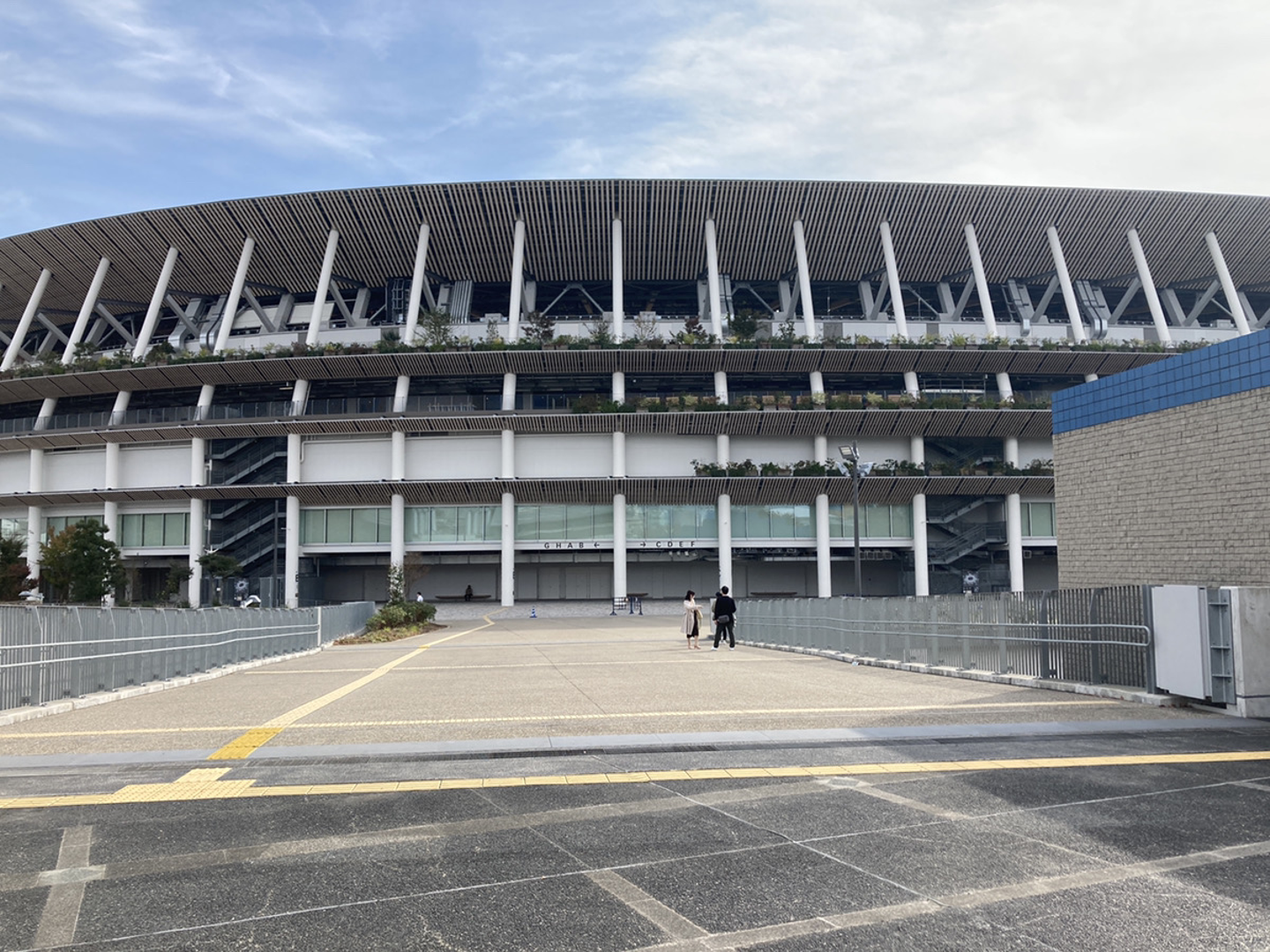 東京体育館を通りすぎると、目の前に国立競技場が見えてきます。