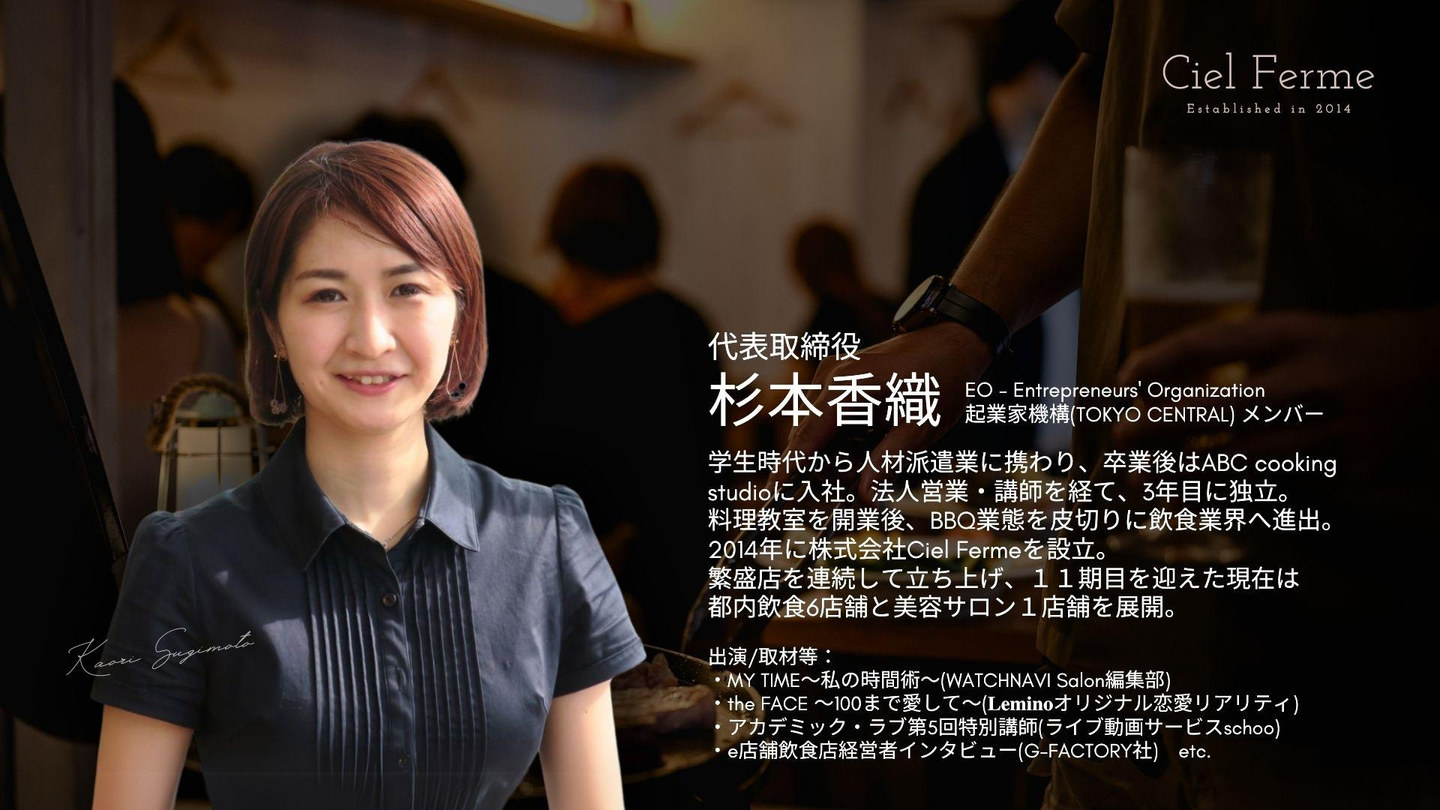 Ciel Fermeは現在、創業11年目を迎え、都内に飲食6店舗・美容1店舗を展開しています。