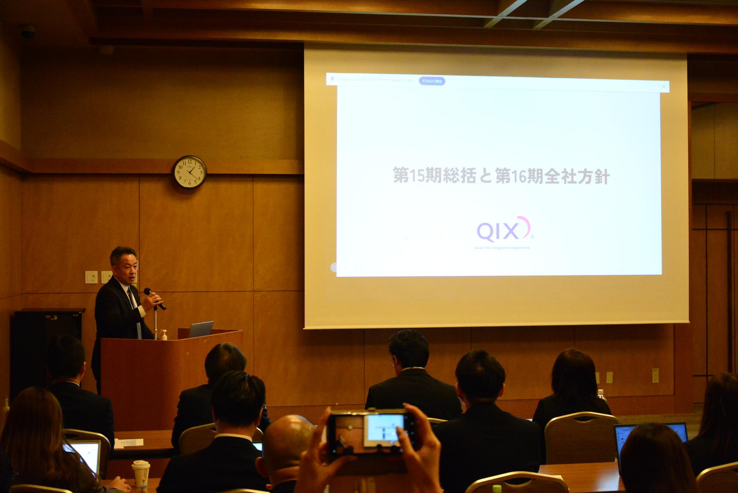 QIXでは、社員一人ひとりが会社の未来を共有し、主体的に行動できる環境を大切にしています。その一環として、毎年一度、社員全員が集まり、1年間の振り返りと今後のビジョンを共有する全社総会を開催しています。