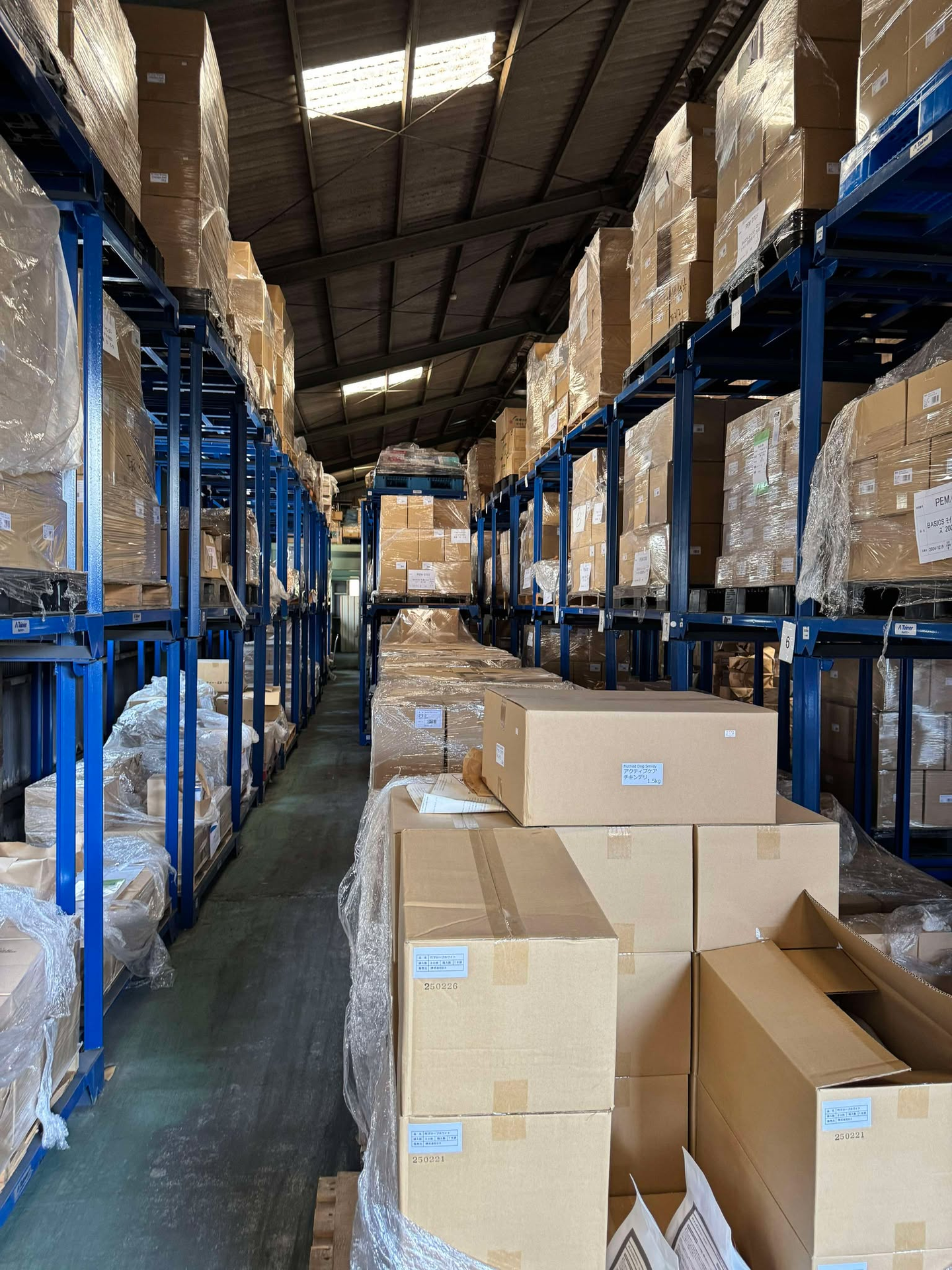 ▼150品目以上の製品が並ぶ富士宮の倉庫内部