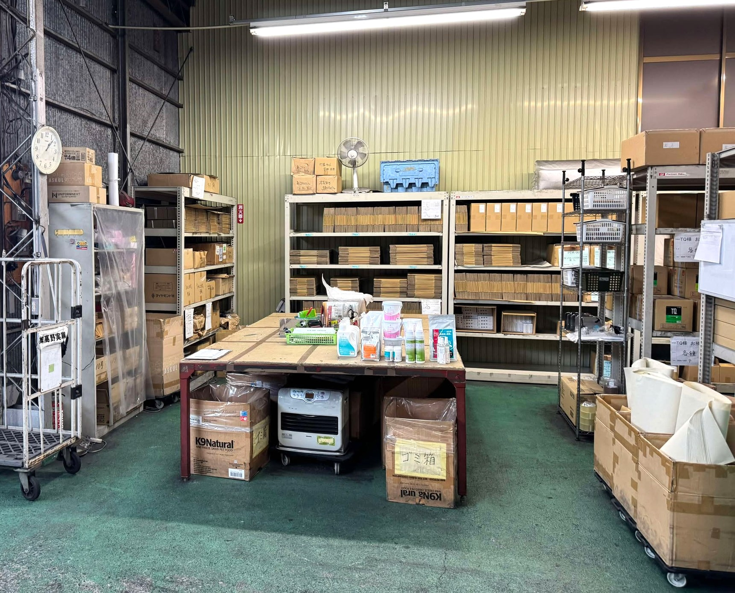 私たちQIXが取り扱う製品は現在150品目以上。サプリメント、スキンケア、フードや衛生用品など多岐にわたりますが、それらすべての在庫を管理しているのが、静岡県・富士宮市にある自社倉庫です。