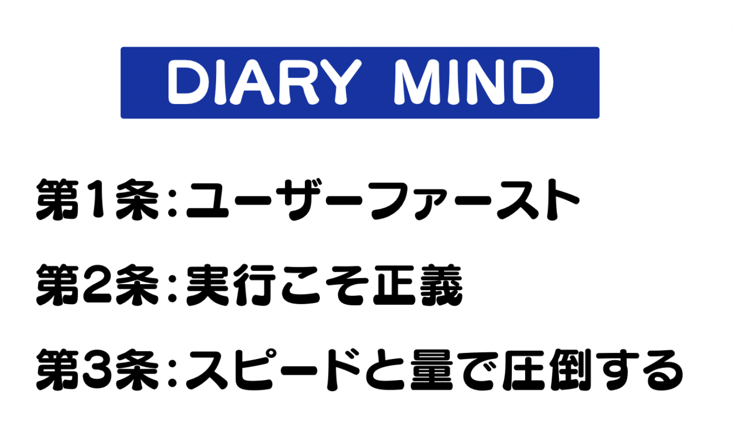 Diaryには事業を推進するうえで大事にすべき行動指針「DIARY MIND」というものがあります。
