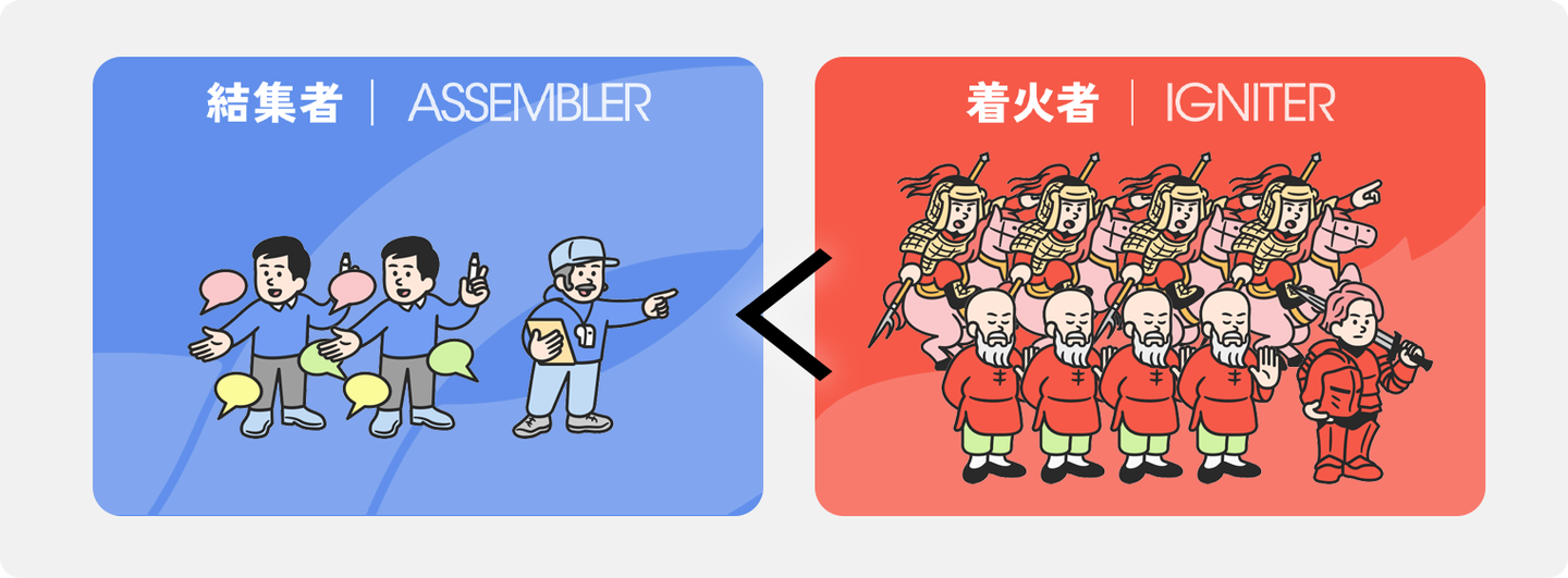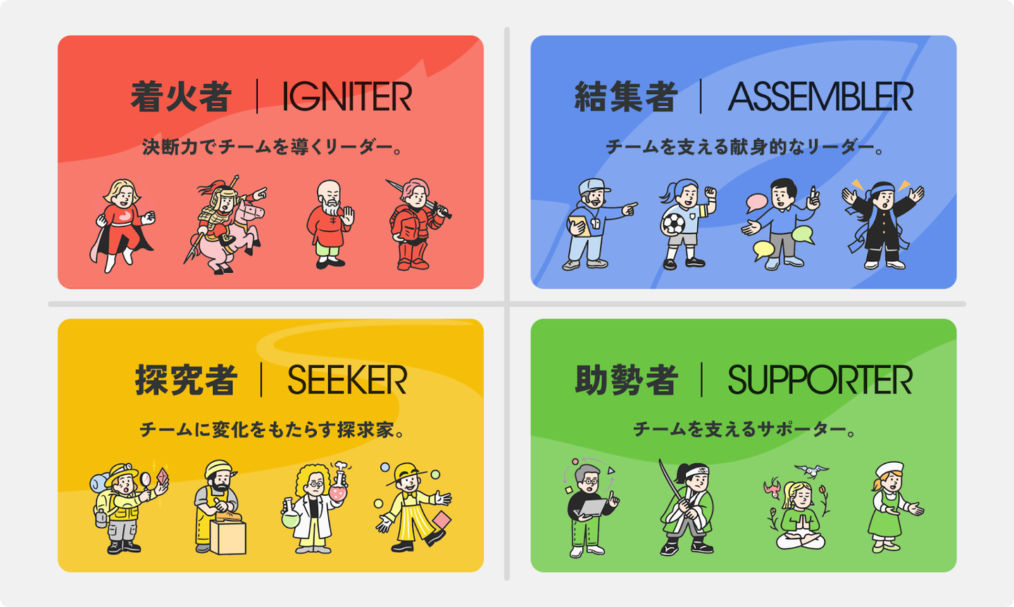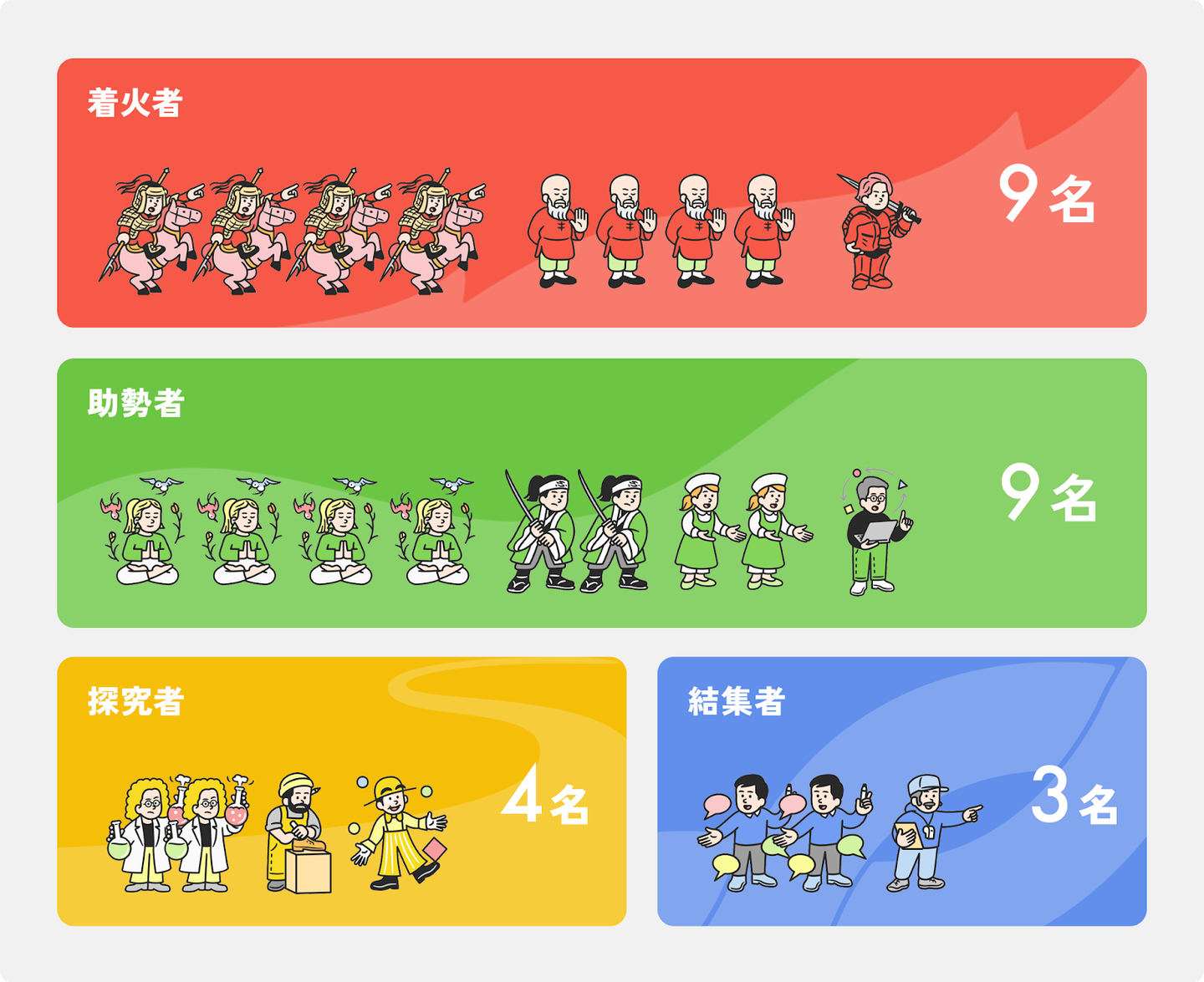 リーダータイプで見ると結集者よりも着火者の方が多く、「人を巻き込んで引っ張る」よりも「自分でどんどん進めていく」タイプのメンバーが多いという傾向に。