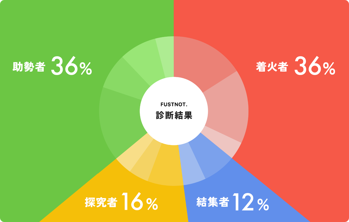 ということで今回、この診断をファストノットの全社員(もちろん代表も!)受けてもらいましたので、各チームはどんな性格構成なのか?意外なタイプが多いのか?社内のリアルな診断結果を、まとめてお届けします!