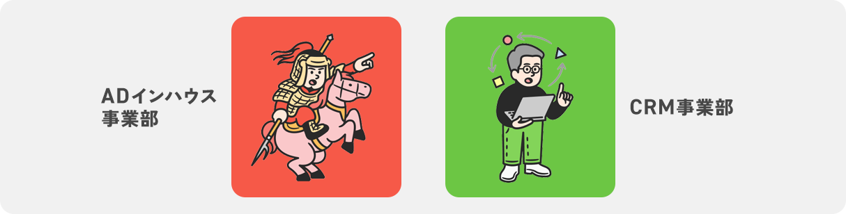 一方でCRM事業部は、支援タイプのブレーンが牽引するチーム。仕組み化や再現性を求め、属人化を避けながら、安定した業務体制をつくることに長けています。大きな派手さよりも『チームが止まらない』状態を支える屋台骨です。