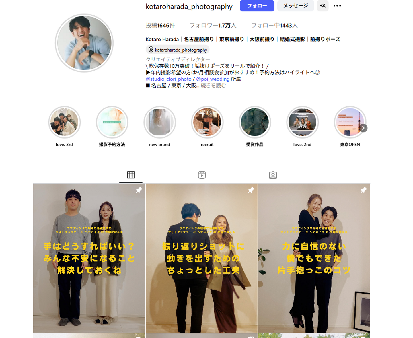 ▲フォロワーは1.7万人!新郎新婦に役立つ情報はもちろん、素敵なお写真がたくさん✨