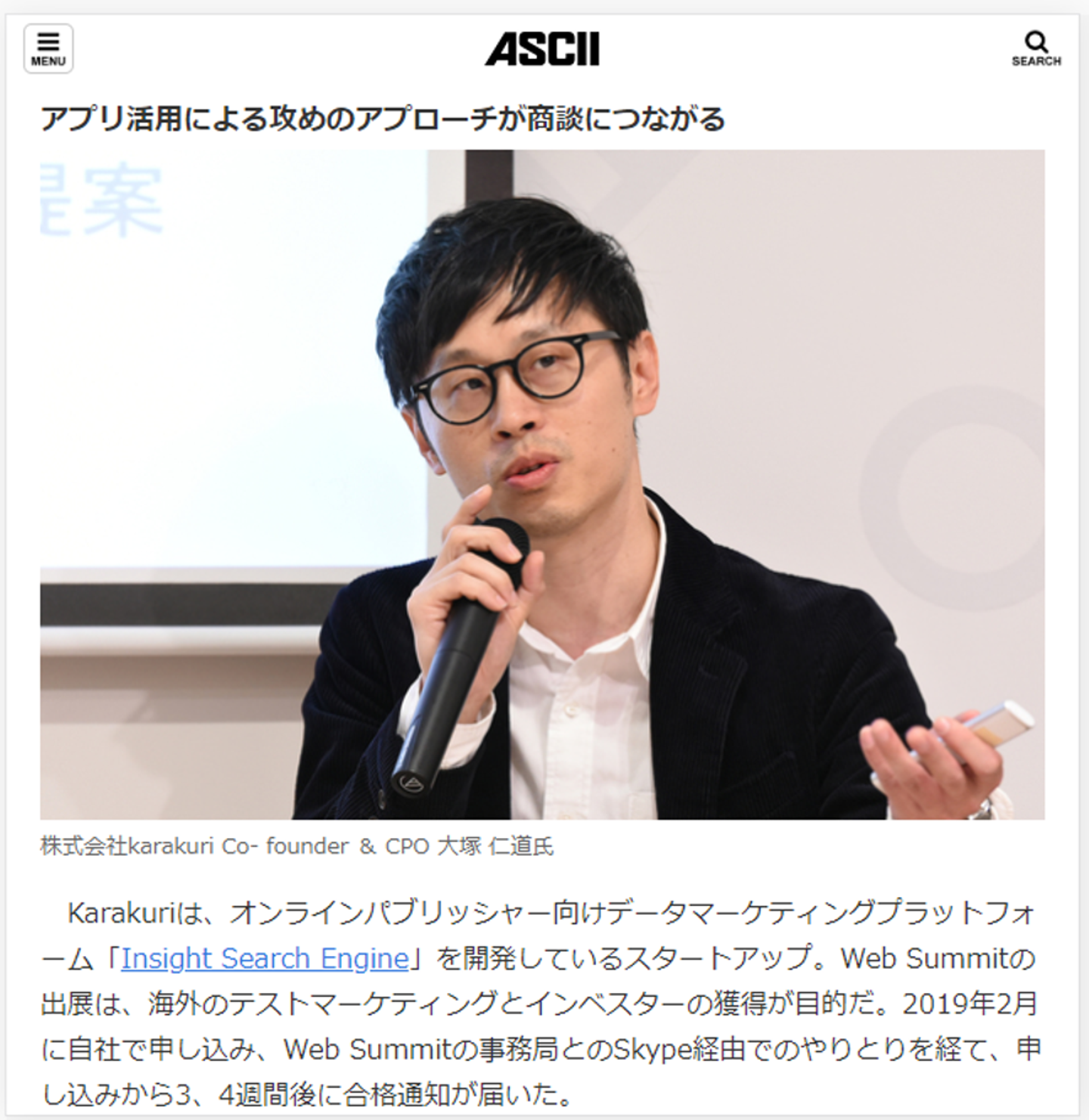 karakuri代表の池田和生と取締役の大塚仁道がインタビュー形式でISE(記事では旧サービス名のCSWとして記述)の強みやWebSummit審査通過実績についてご紹介頂いています。