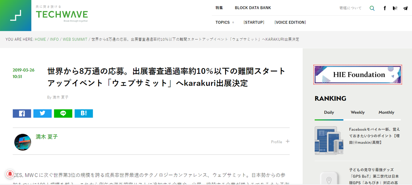 karakuriがWebSummit出展審査した際に取り上げて頂いた記事です。