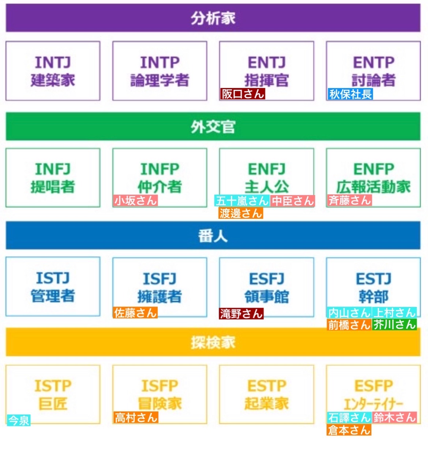 部署ごとに似た診断結果のメンバーが集まるのか?それとも全然違うタイプなのか?なども気になりますね。