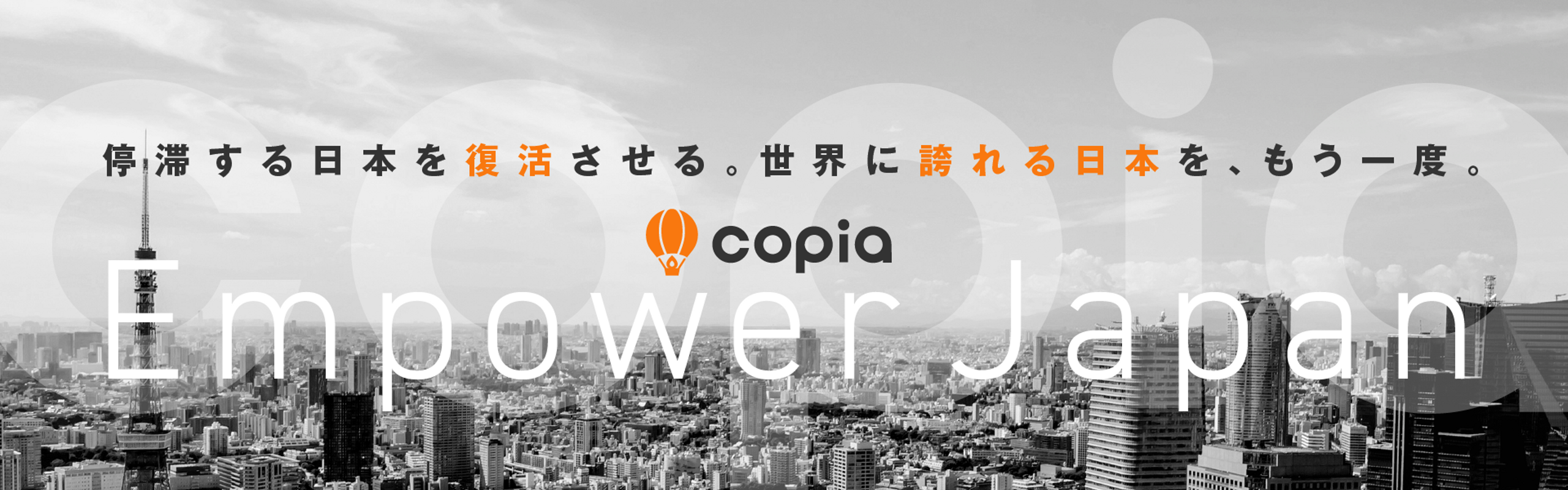 「日本に生まれてよかった」──そう思える社会を未来に残すために。Copiaは「2045年に年商1兆円」を目指し、社会の“不”の解消につながる事業を次々と生み出すマルチスタートアップです。コンサルのDNAを持つ事業会社として、プロ経営者を続々と輩出し、日本経済の底上げにつなげていきたいと考えています。