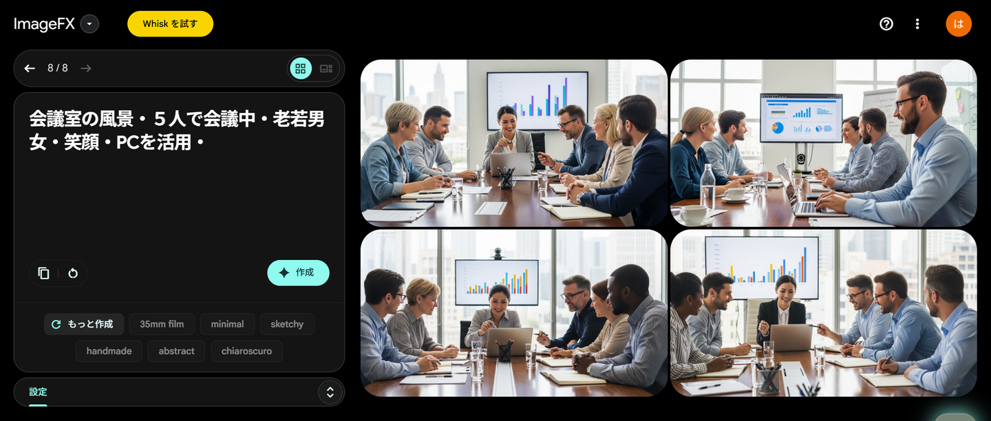 今回はImageFXを利用しました。プロンプトは試行錯誤でした。この画像は再現です。