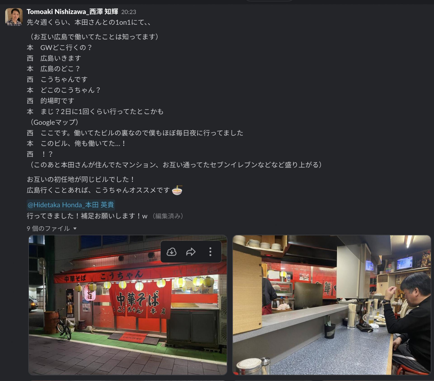 そういえば・・Slackの#休日の部屋というチャンネルに代表本田さんとの1on1のやりとりが!