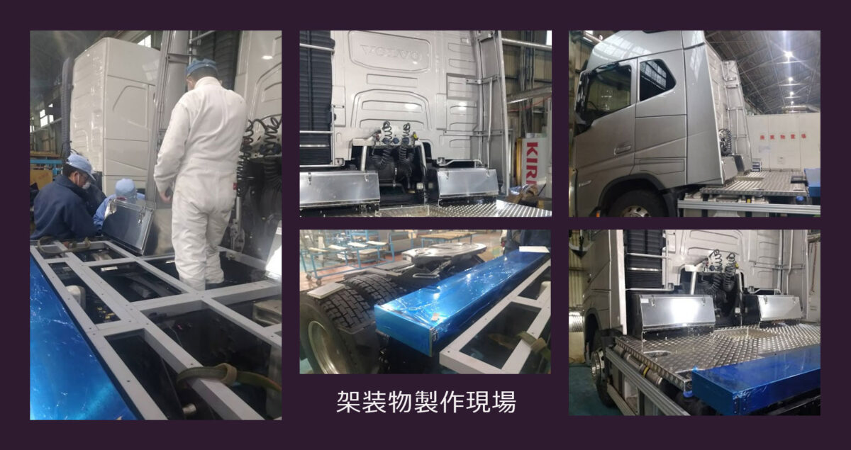今回、当社としてはそんな「ボルボ・トラック」のカスタム架装(踊場・工具箱の製作、塗装)に携わらせて頂いております。