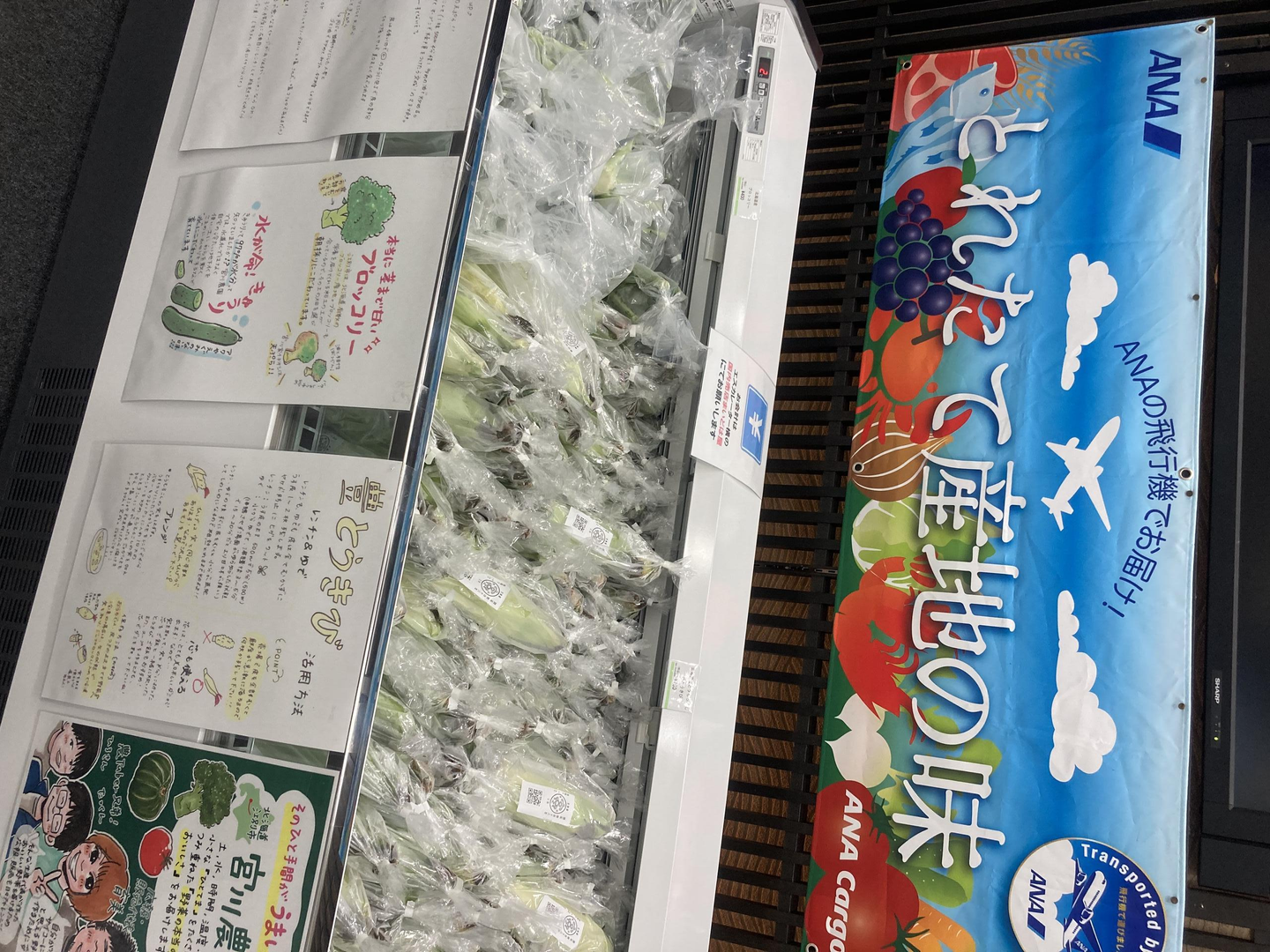 当社北海道オフィスのもつネットワークを活用し、北海道の新鮮な朝採れ野菜を、当日の午後に富山空港で販売致しました。