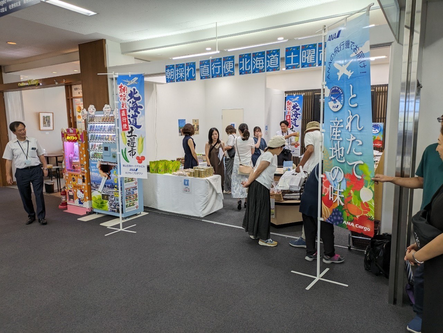 富山空港2階「TOY GALLERY」にて開催された「朝採れ直行便北海道土曜市」に