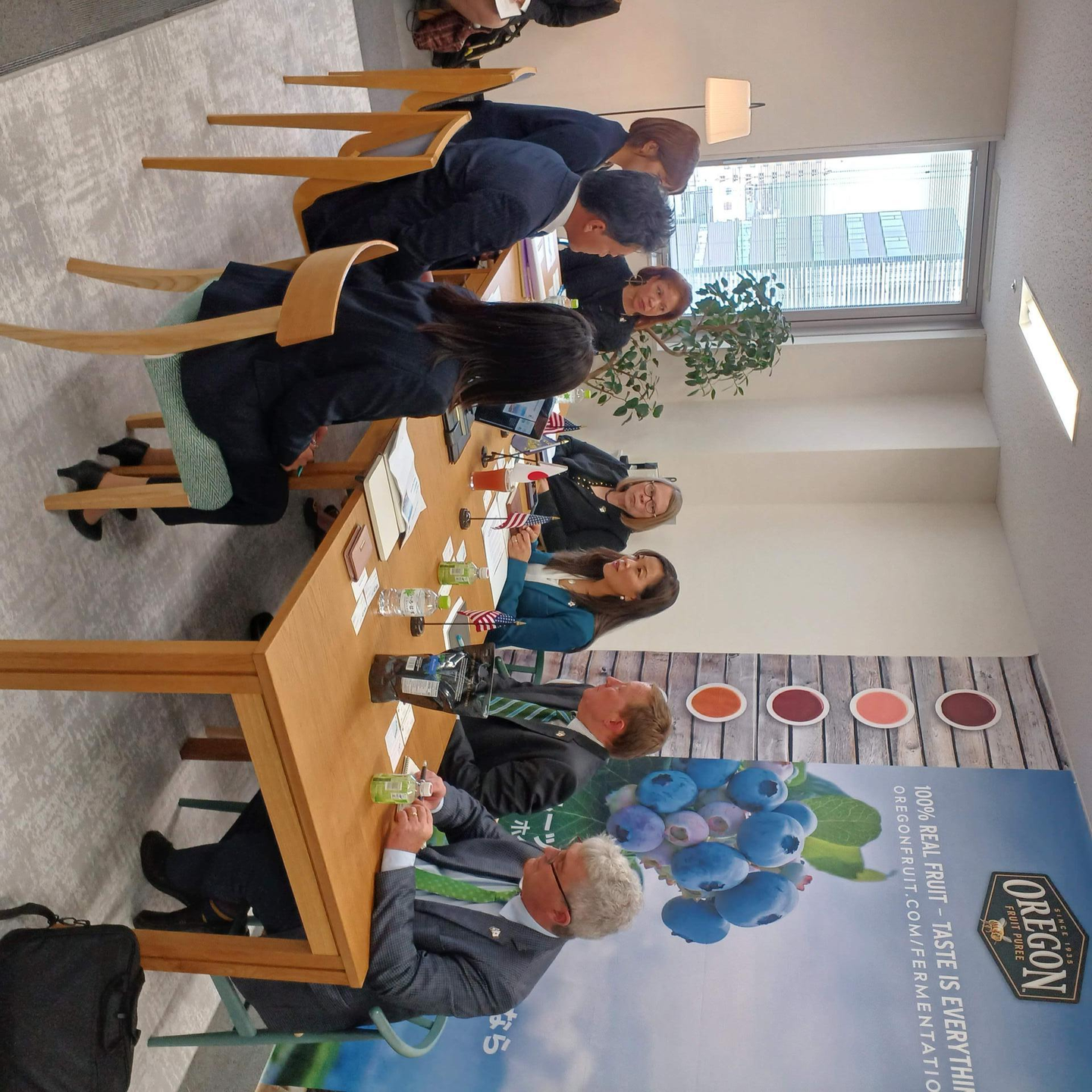 オレゴン州経済開発局と港湾局の皆様には、弊社がオレゴン州から輸入しているOregon Fruit Productsのピューレ事業や北海道オフィスの取り組みについて報告させていただきました。