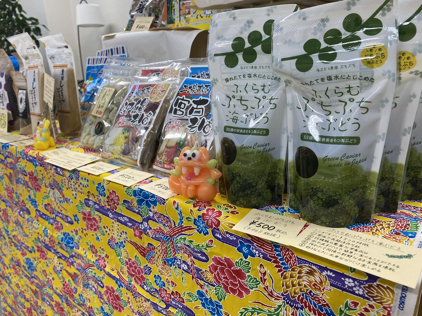 沖縄そば、海ぶどう、紅芋タルト、雪塩さんどなど、沖縄ならではの味覚が勢揃い!地元の味をぜひご賞味ください。