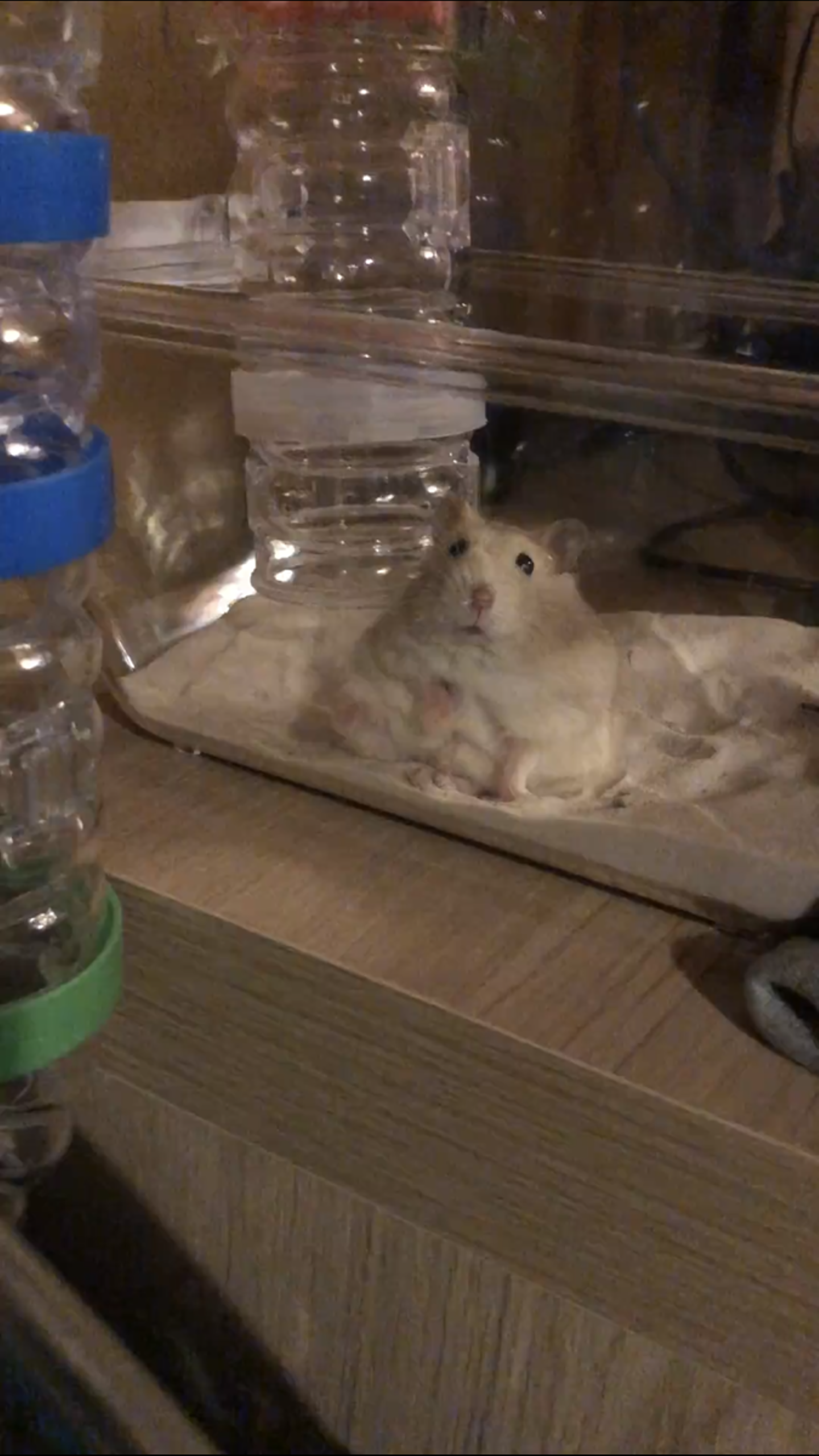 うちのハムスターおもちちゃんがケージからパイプをつたって私のデスクに遊びに来れるようにしました!目が合うたびにキュン!こんなポーズに遭遇できた時には癒しでしかありません!
