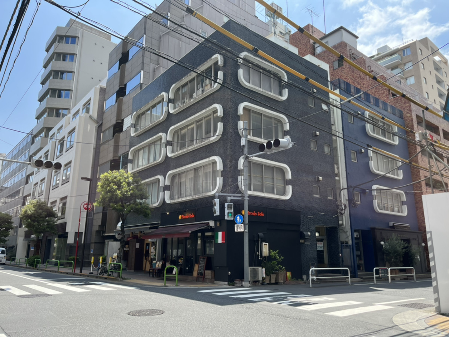 そこから300メートルほどまっすぐ歩くとブルービルが2棟見えてきます。手前が本館、奥が別館です。ミラクアは別館に入っているので奥の鮮やかなブルービルです♪
