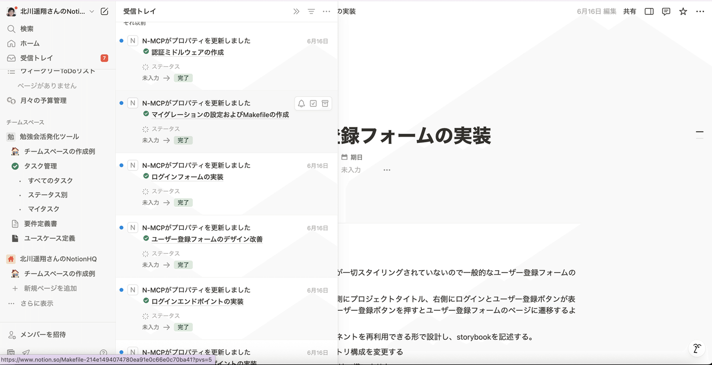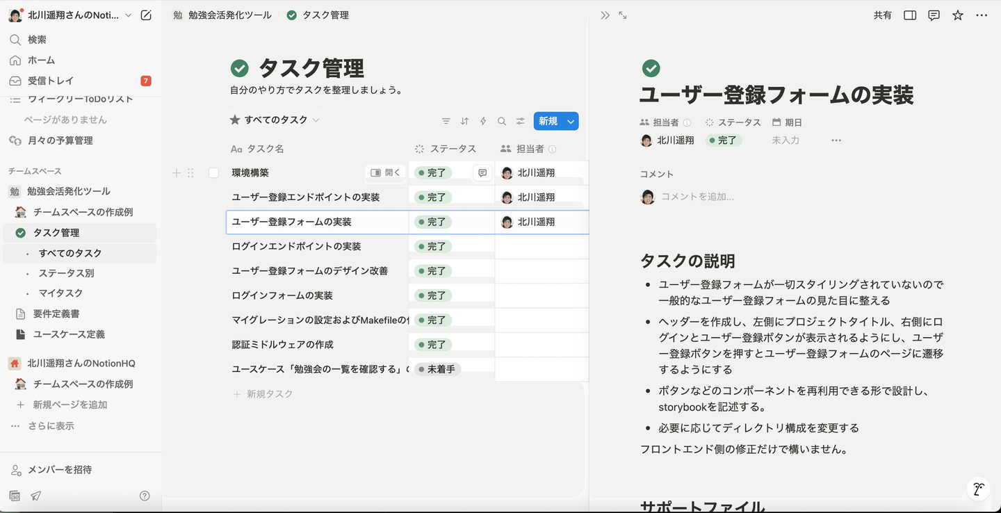 - Notion (情報管理ツール、タスク管理等に用いられる) を使ってプロジェクトのタスクを細かく分割、整理