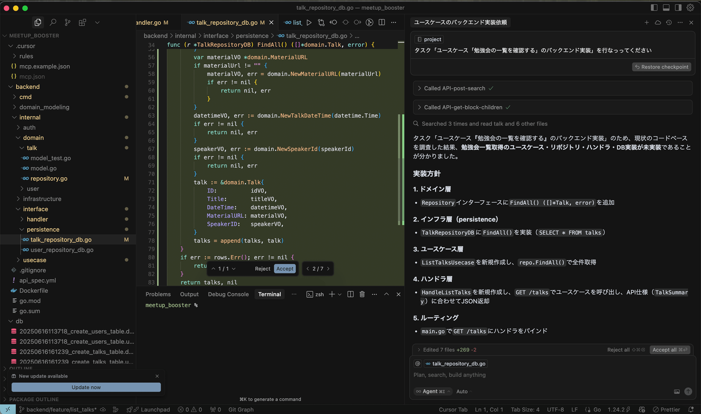 Cursorを用いたプロジェクト開発の実演の様子がこちらです!