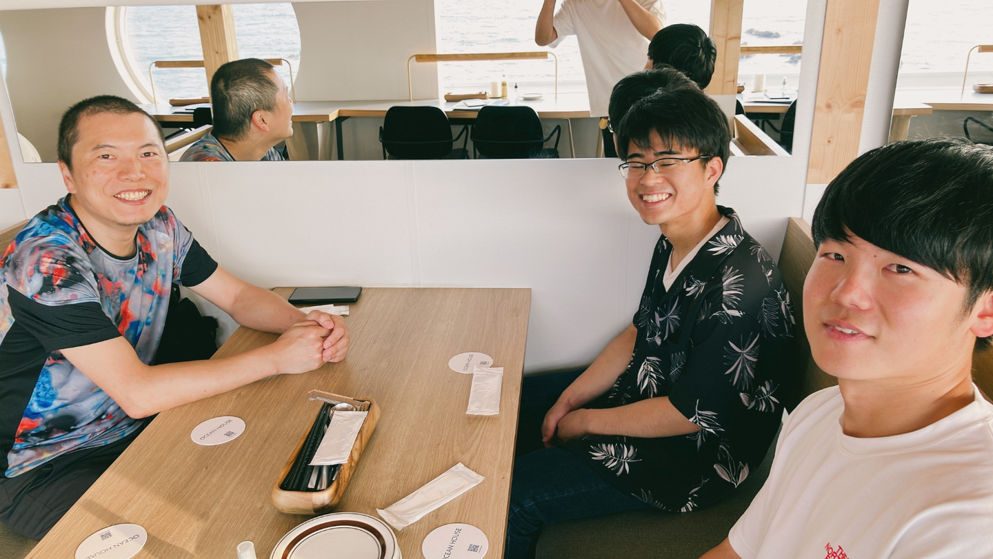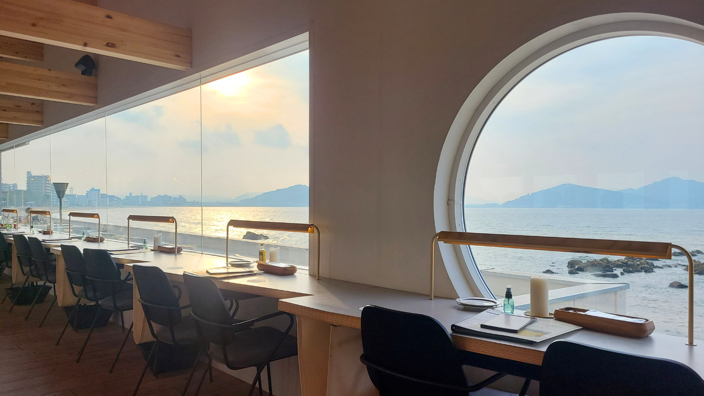 海が見える素敵なロケーションの店内でゆっくり食事し、みんなでリフレッシュ🥂