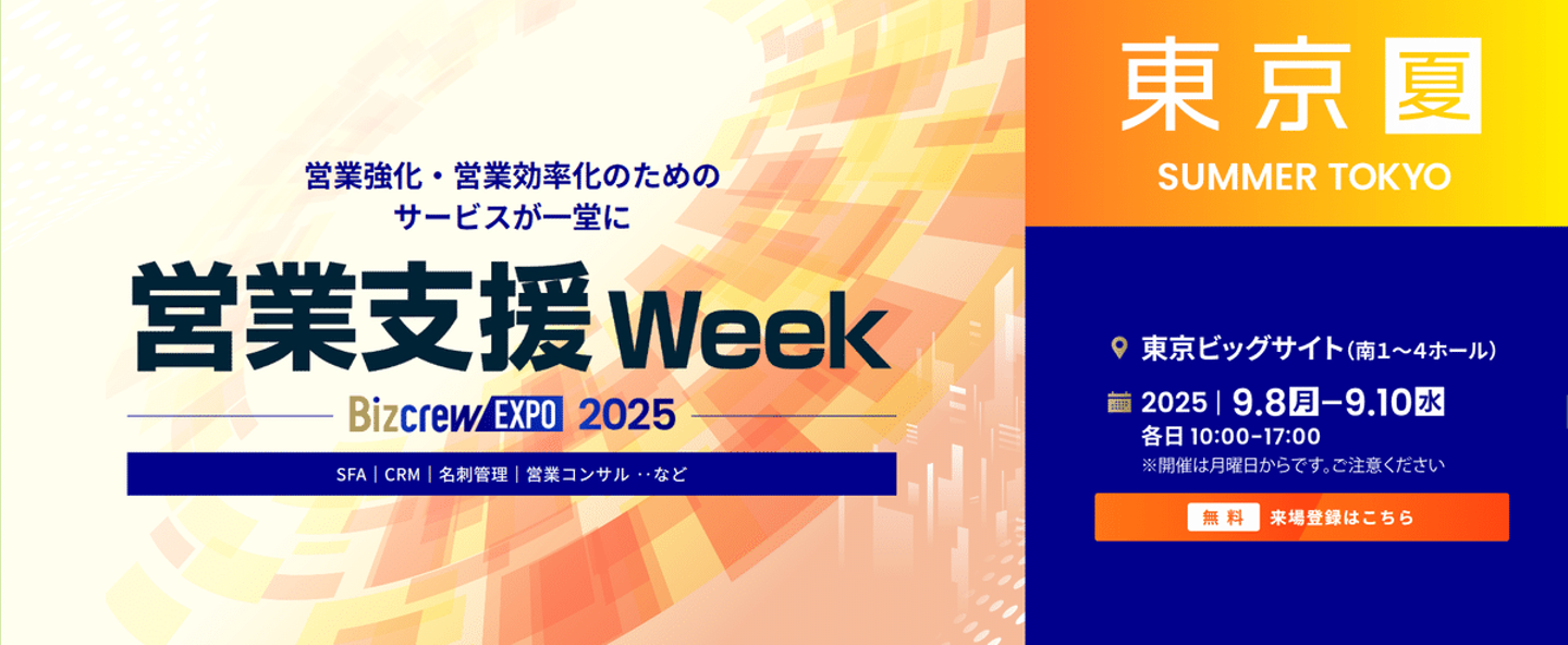 2025/9/8(月)-9/10(水)、株式会社セールスリクエストは、東京ビッグサイトで行われる「営業支援 Week 2025 夏 東京」に出展いたします!
