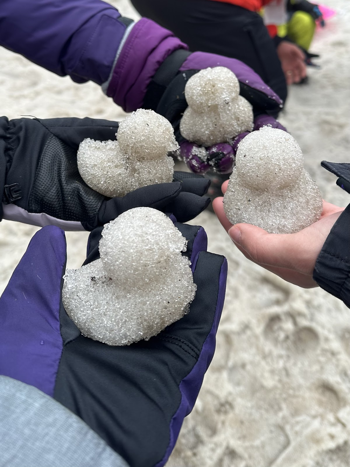 △スキー場の人工雪で作ったアヒルたち