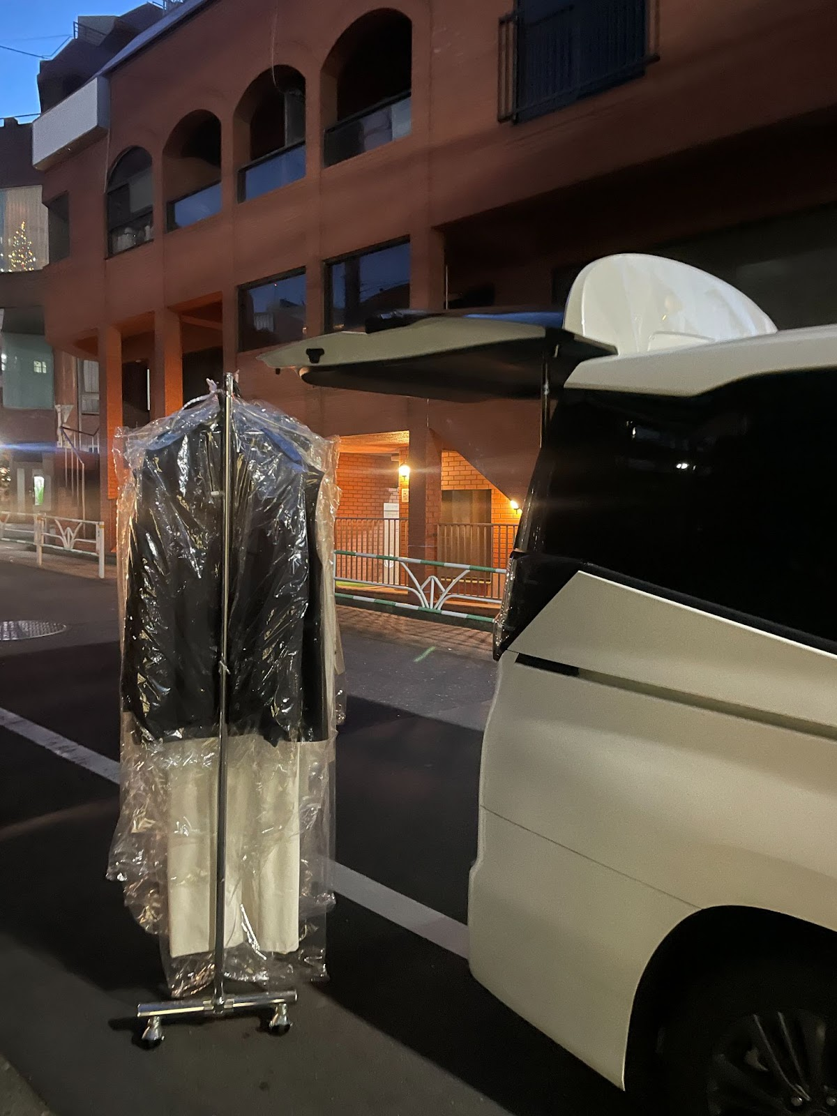 早朝から行動開始!スタジオや撮影場所へ向かう前に、衣装を引き取りに行きます!!