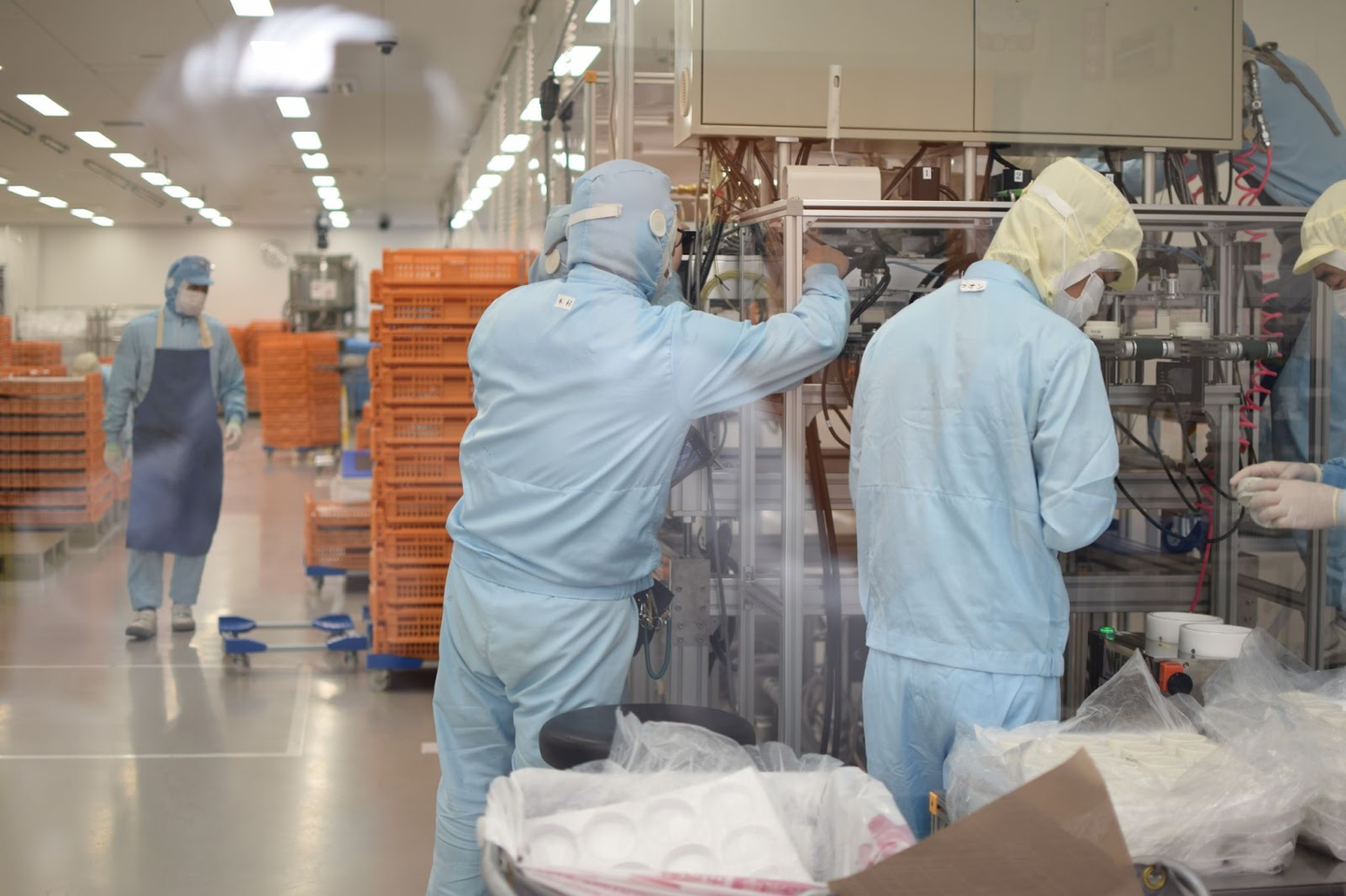 一般的な化粧品メーカーですと、基本的にはずっと同じ製品を製造することとなりますが、当社は今日は洗顔料、明日は乳液というように、毎日のように全く異なる製品を製造します。