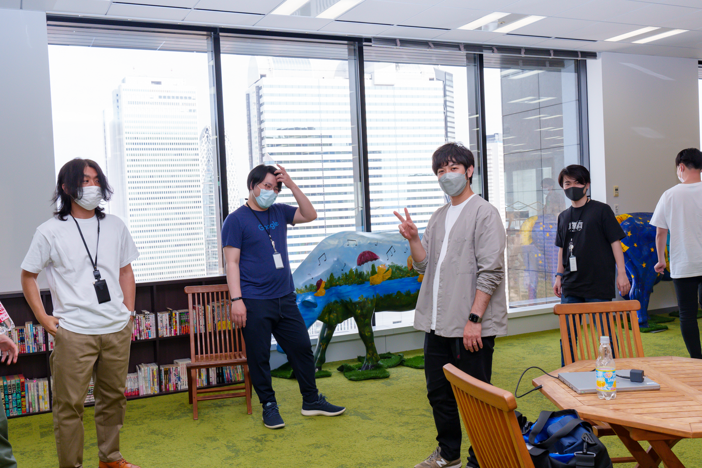 - 今回は自社オフィスの一角であるcampusの中の会議室にて行いました! 写真はcampusに続々と集まるメンバー。
